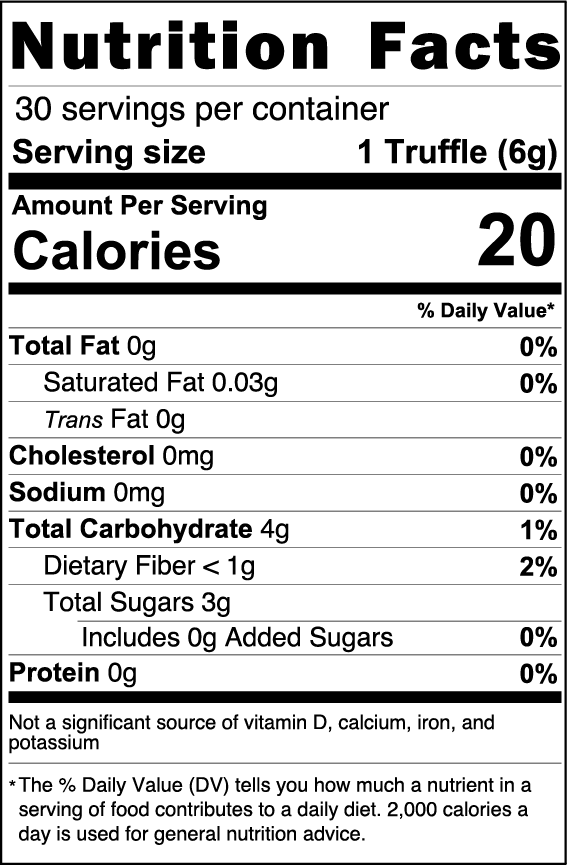 Suggested Use: 1 truffle a day. Do not use a dietary supplement to replace a complete and balanced diet. Do not exceed the recommended daily dose. Store at room temperature out of the reach of children.